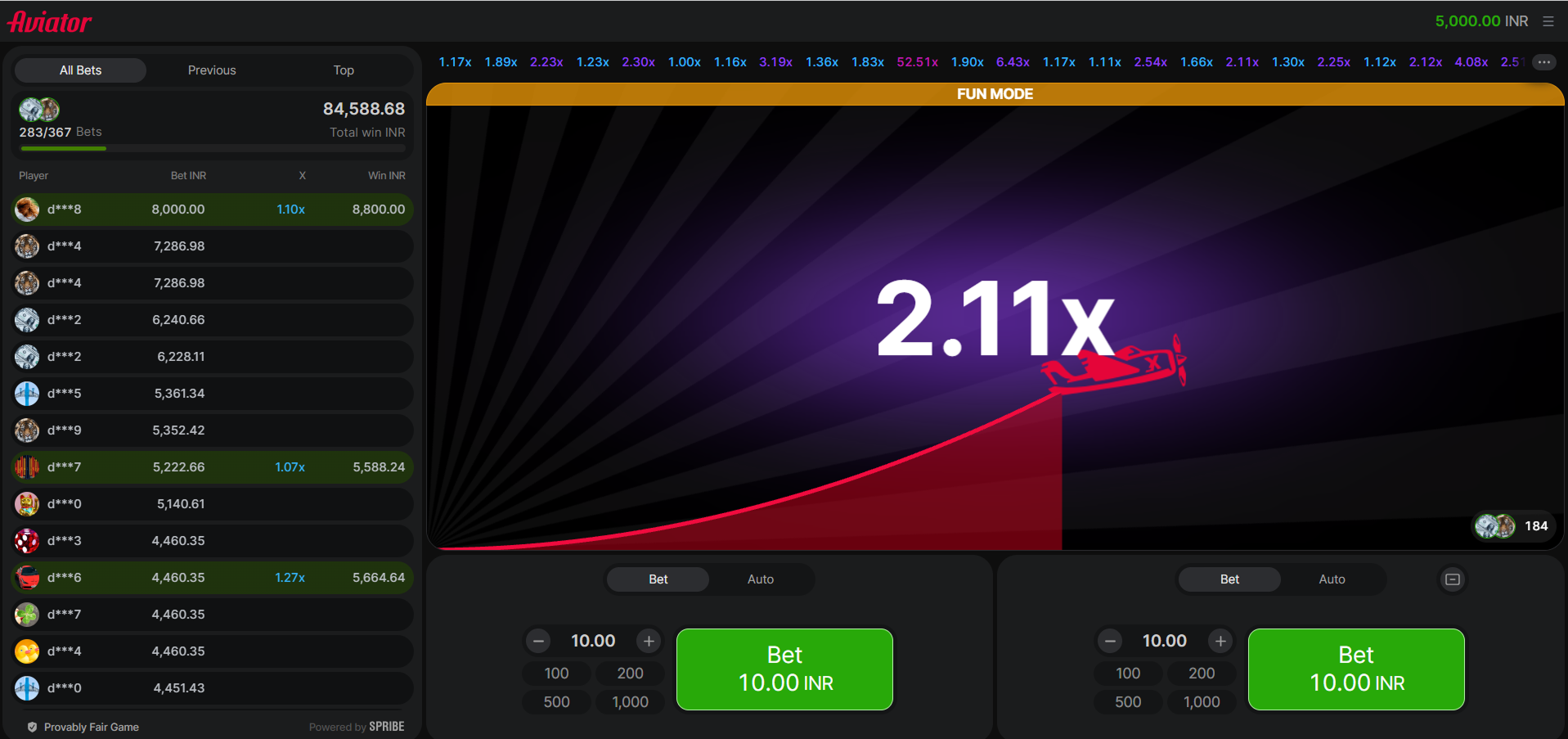 - Different Betting Limits and Multipliers: Wagers as low as $100 (8,331 INR) or as high as $15,000 (1,249,743 INR) are available. Moreover, the higher paying casinos are able to have higher paying multipliers.