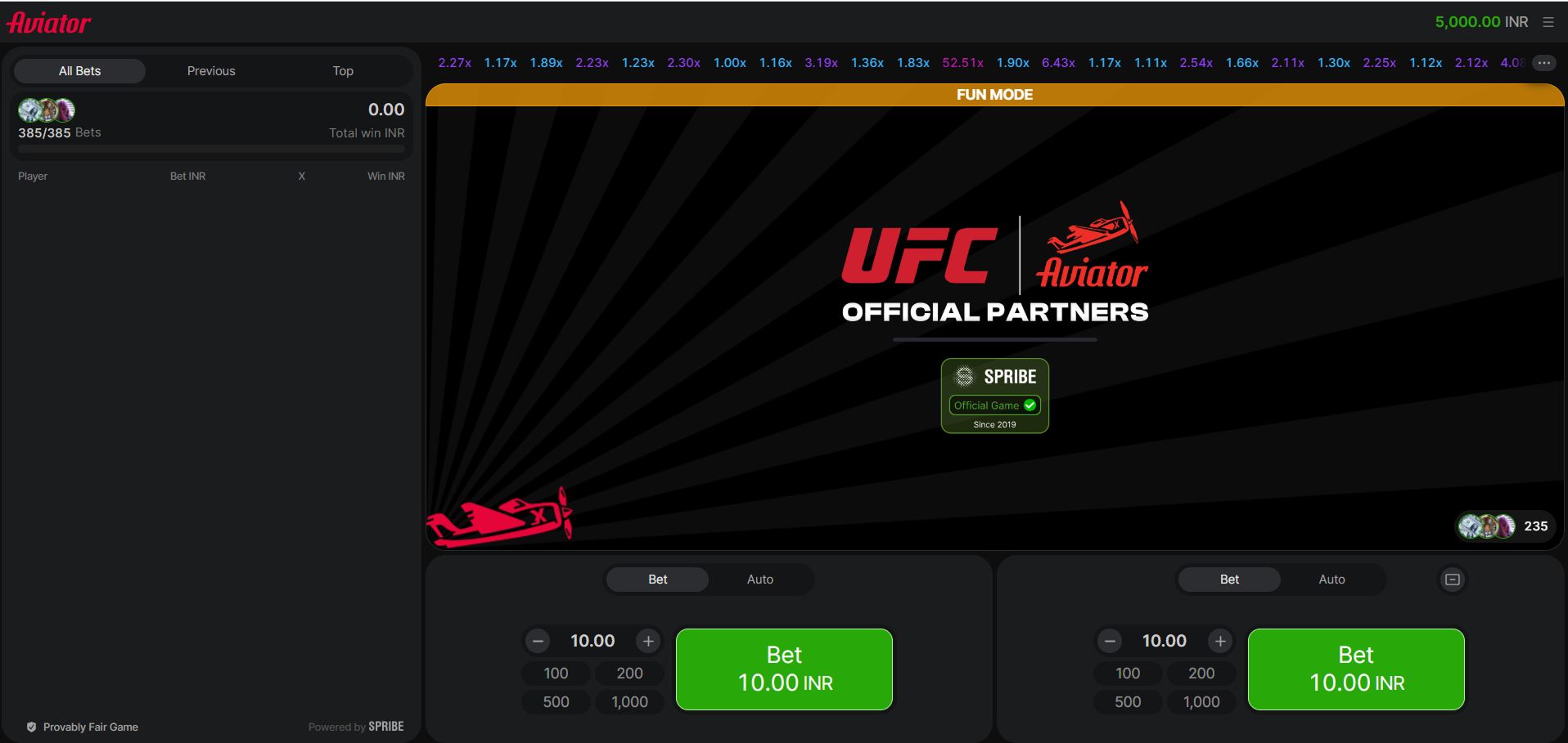 Once you start playing Aviator, you might enter a round that has not yet ended. In such situations, it is best to wait for the airplane to crash, then waiting for the start of a new round, during the five-second intermission, place your bets.
